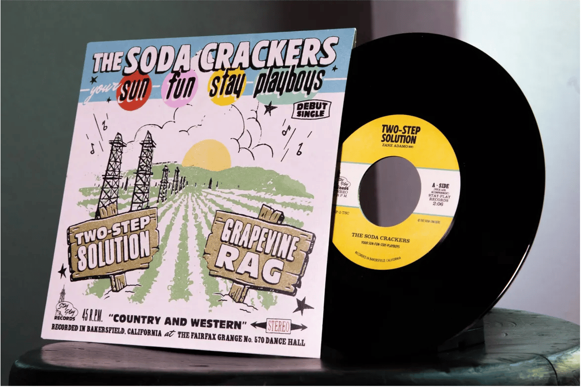 The Soda Crackers, your Sun-Fun-Stay-Playboys' debut single on 7" vinyl!
